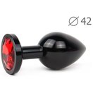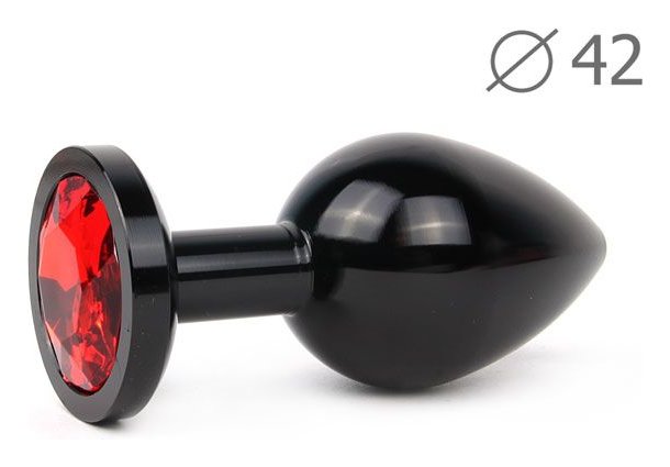 Коническая черная анальная втулка с красным кристаллом - 9,3 см