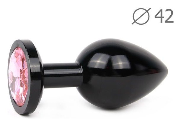 Коническая черная анальная втулка с розовым кристаллом - 9,3 см
