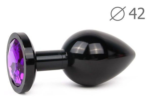 Коническая черная анальная втулка с кристаллом фиолетового - 9,3 см