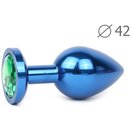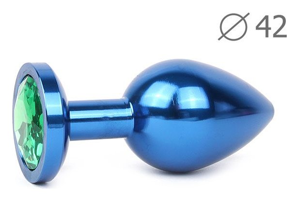 Коническая синяя анальная втулка с зеленым кристаллом - 9,3 см.