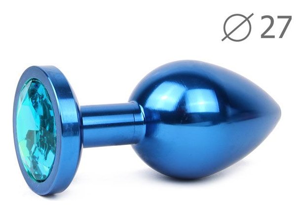 Коническая синяя анальная втулка с голубым кристаллом - 7 см