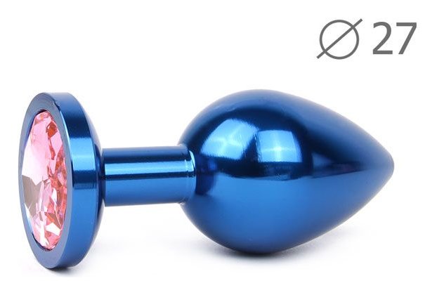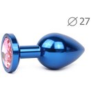 Коническая синяя анальная втулка с розовым кристаллом - 7 см