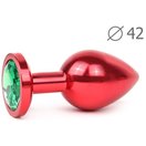 Коническая красная анальная втулка с зеленым кристаллом - 9,3 см.