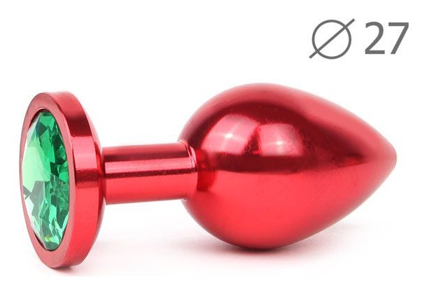 Коническая красная анальная втулка с зеленым кристаллом - 7 см.