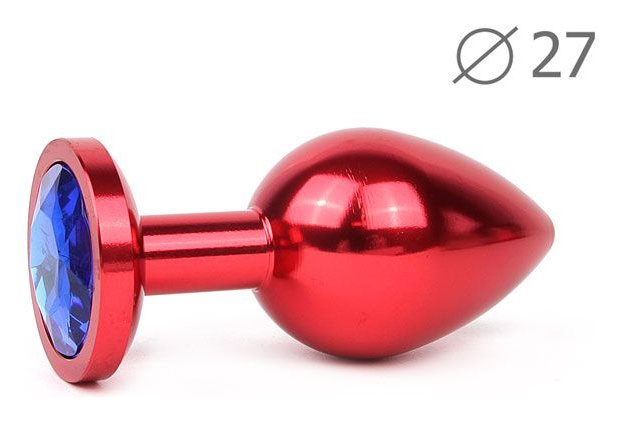 Коническая красная анальная втулка с синим кристаллом - 7 см