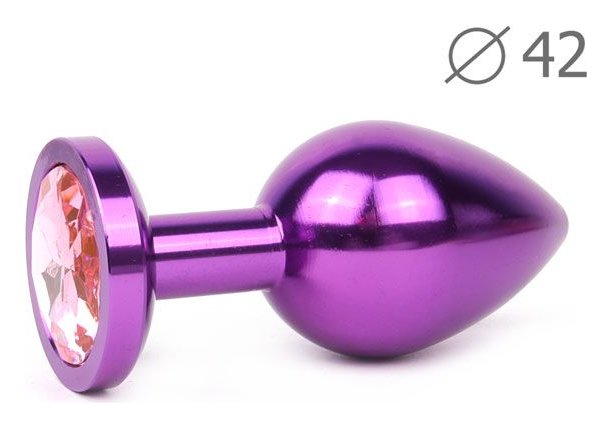 Коническая фиолетовая анальная втулка с розовым кристаллом - 9,3 см