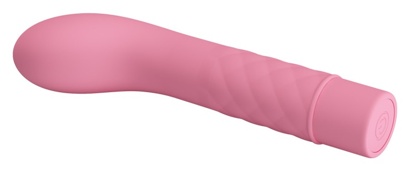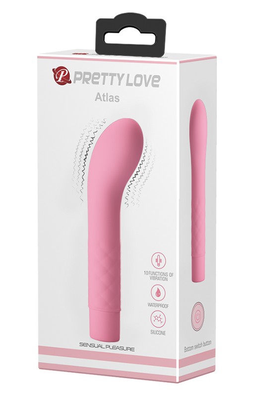 Нежно-розовый вибратор с загнутым кончиком Atlas - 14 см