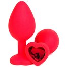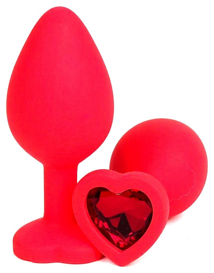Красная силиконовая анальная пробка с красным стразом-сердцем - 8 см