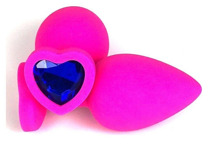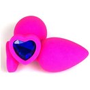 Розовая силиконовая пробка с синим кристаллом-сердцем - 8 см