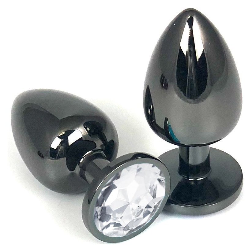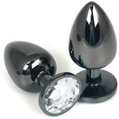 Черная металлическая анальная пробка с прозрачным стразом - 6,5 см