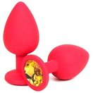 Красная силиконовая анальная пробка с оранжевым стразом - 6,8 см
