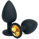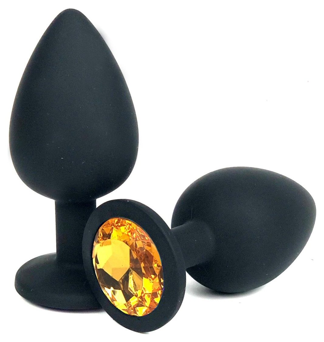 Черная силиконовая анальная пробка с оранжевым стразом - 6,8 см.