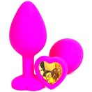 Розовая силиконовая пробка с оранжевым кристаллом-сердцем - 8,5 см