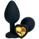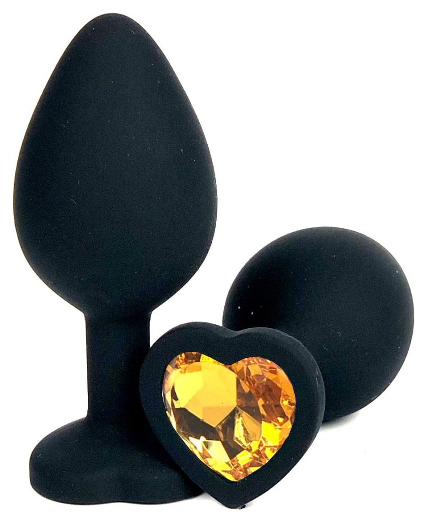 Черная силиконовая пробка с оранжевым кристаллом-сердцем - 8,5 см