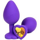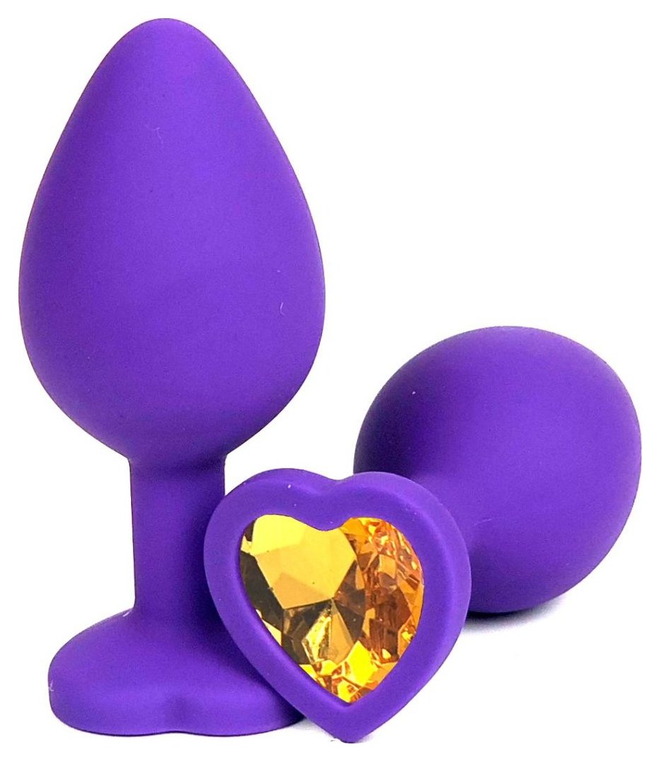 Фиолетовая силиконовая анальная пробка с оранжевым стразом-сердцем - 8 см