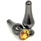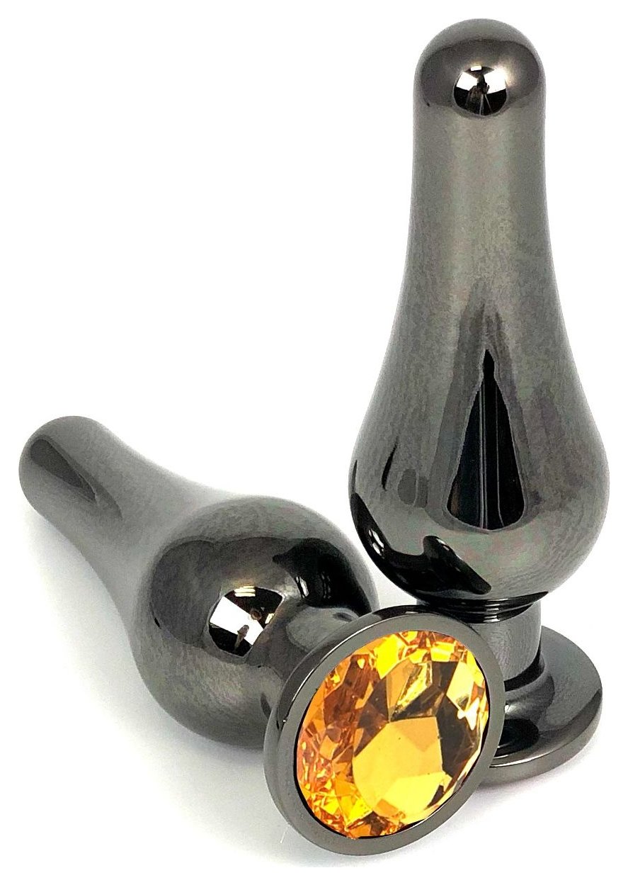 Черная удлиненная анальная пробка с оранжевым кристаллом - 11,5 см