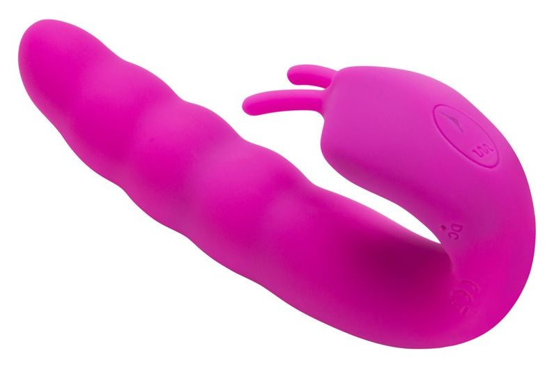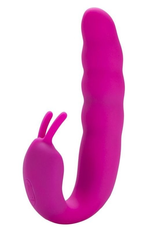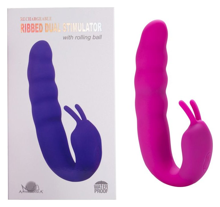 Розовый вибратор Ribbed Dual Stimulator with Rolling Ball - 17 см