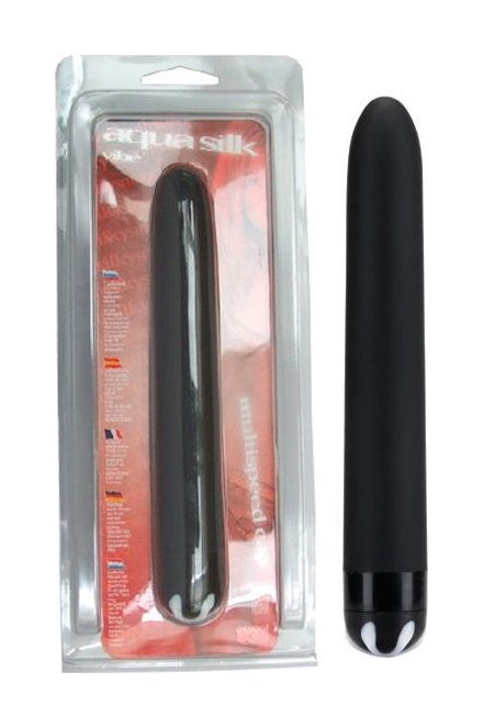 Черный гладкий вибромассажер Aqua Silk - 15,5 см