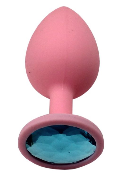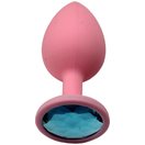 Розовая анальная пробка с голубым кристаллом - 8,4 см