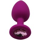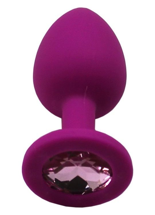 Пурпурная анальная пробка с розовым кристаллом - 7,4 см