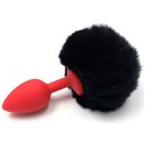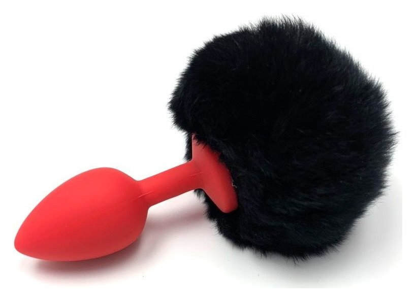 Красная анальная пробка с пушистым черным хвостиком зайки