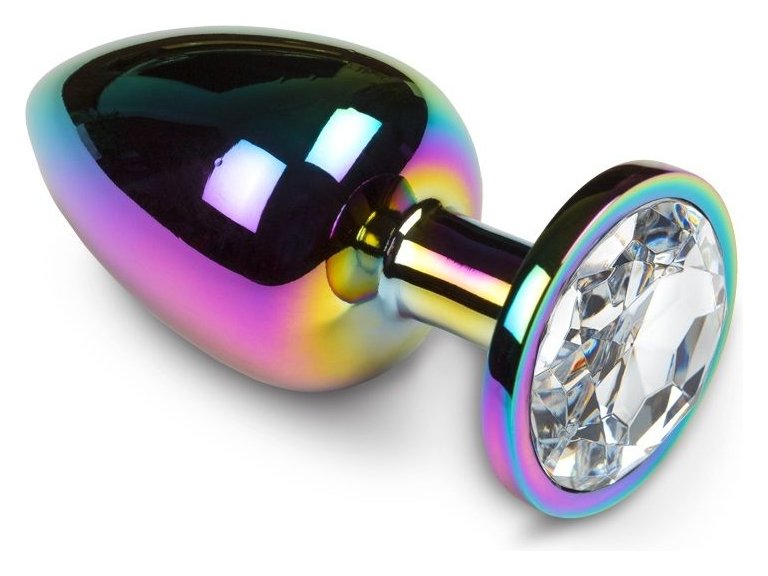 Большая радужная анальная пробка с прозрачным кристаллом - 8 см