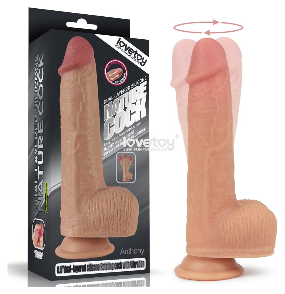 Телесный реалистичный вибратор-ротатор 8.5 Dual layered Silicone Rotating Nature Cock Anthony - 21,5 см