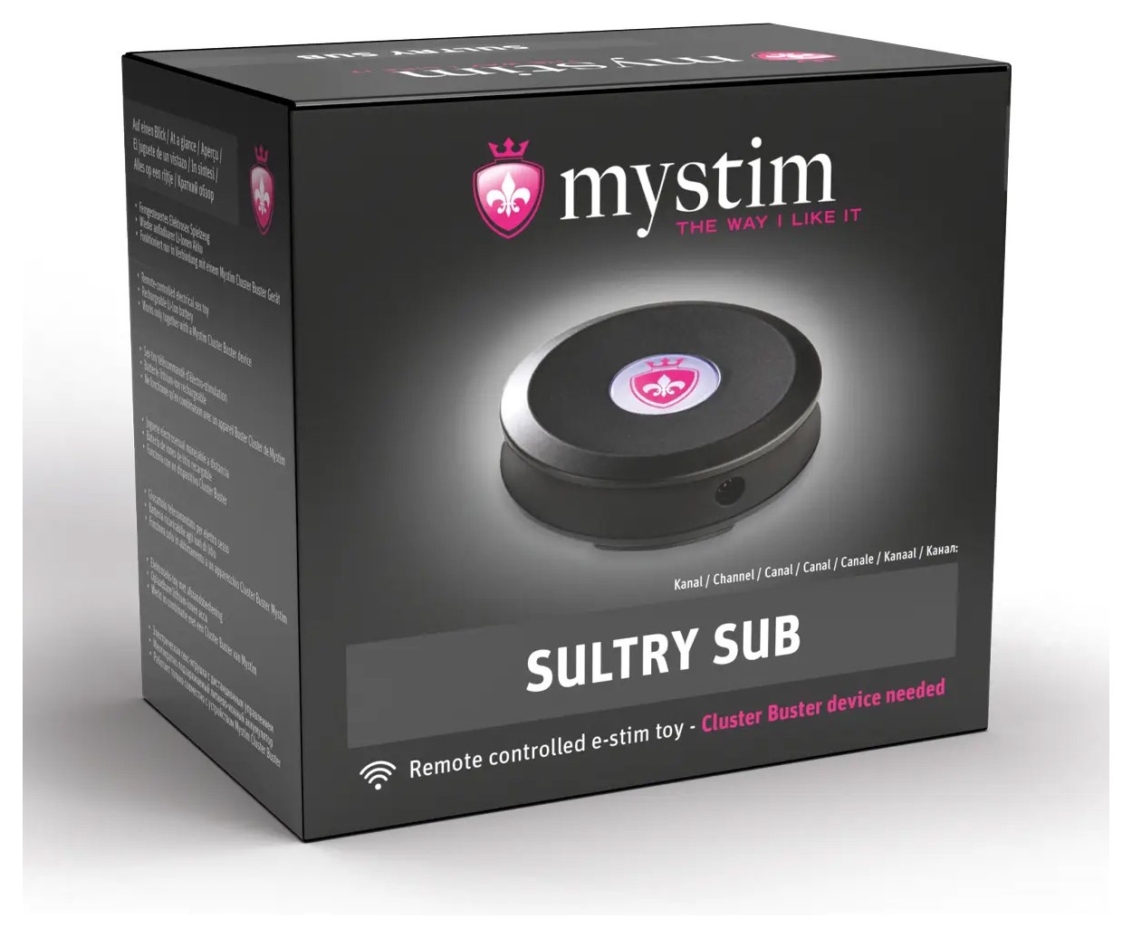 Приемник сигнала Sultry Sub Channel 8 предназначен для работы с пультом Cluster Buster (приобретается отдельно). Он принимает радиосигналы и преобразует их в электрические импульсы для электростимуляции. Устройство имеет 10 уровней интенсивности, 12 программ стимуляции и 5 программ тренировок, включая упражнения для мышц тазового дна. В комплекте переходник для аксессуаров Mystim и один самоклеящийся биполярный электрод.