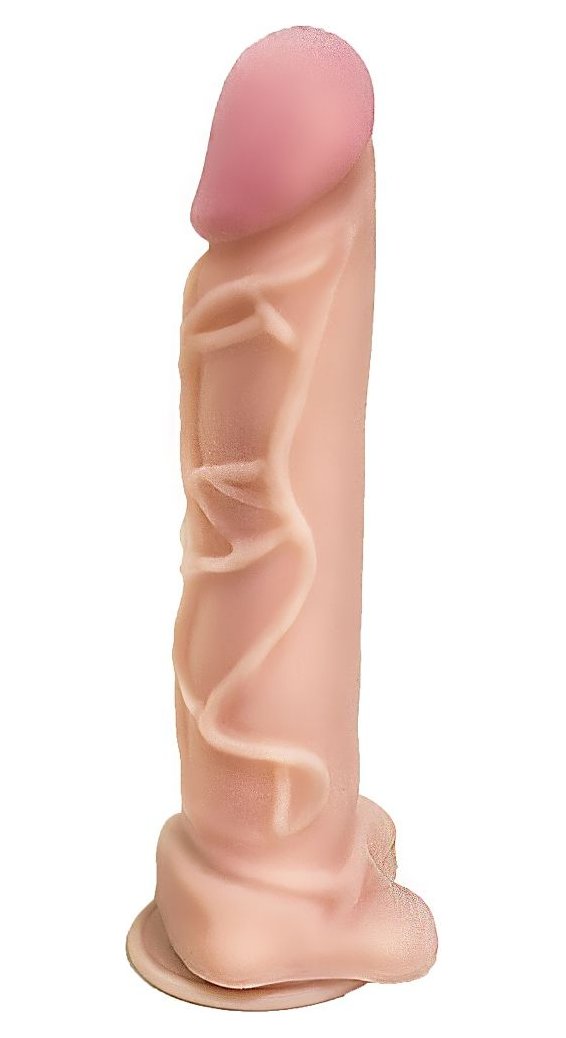 Фаллоимитатор с рельефом из вен на одной стороне ствола - 23,5 см