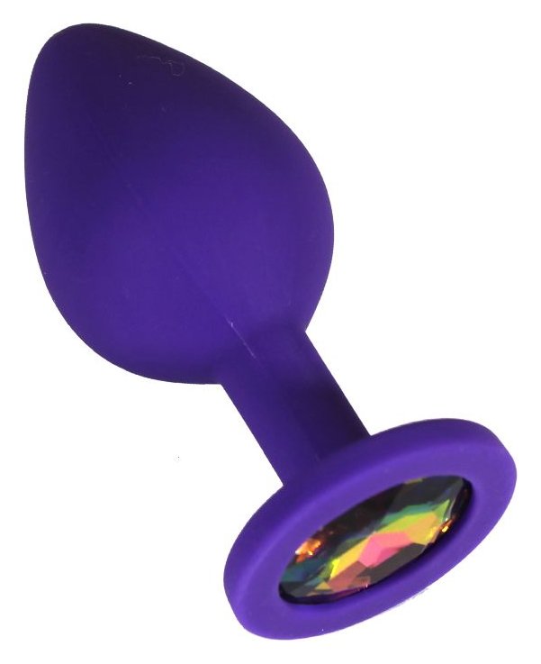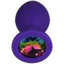 Фиолетовая анальная пробка с радужным кристаллом - 8 см