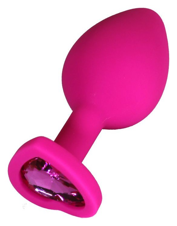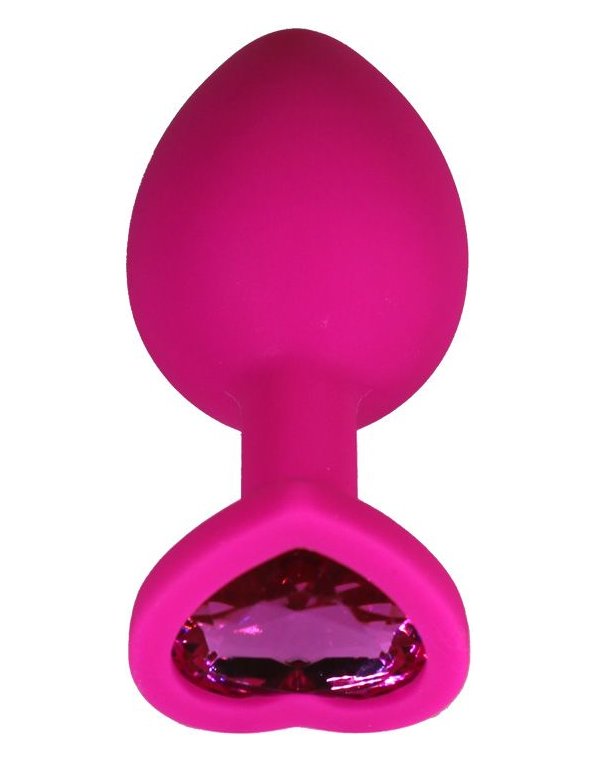 Розовая анальная пробка с кристаллом-сердечком - 9 см