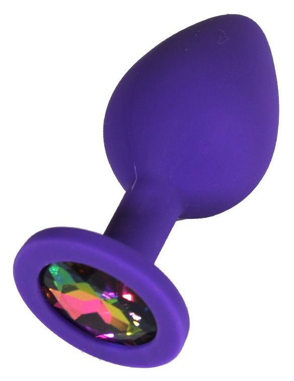 Фиолетовая анальная пробка с радужным кристаллом - 9 см