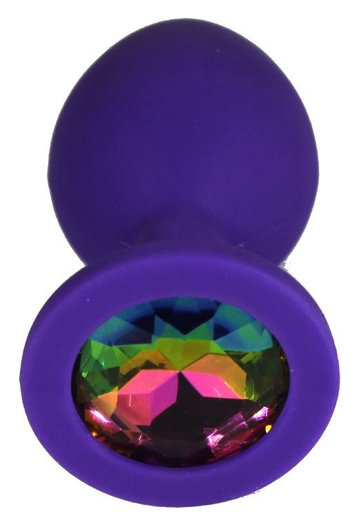 Фиолетовая анальная пробка с радужным кристаллом - 7 см