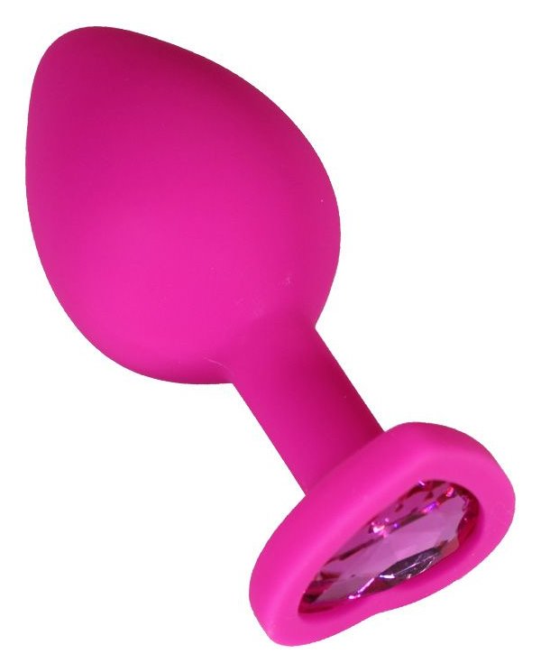 Розовая анальная пробка с кристаллом-сердечком - 7 см