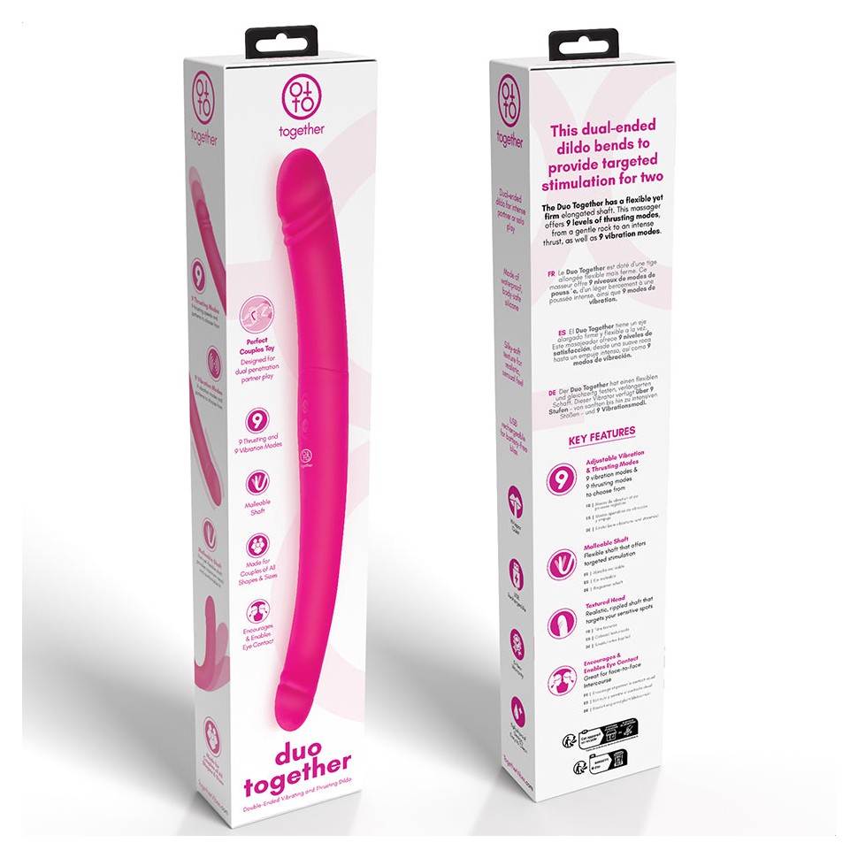 Duo Together - это розовый двусторонний вибромассажер на радиоуправлении, изготовленный из шелковистого, мягкого, безопасного для тела силикона. Он очень гибок и податлив, поэтому вы можете согнуть его, чтобы он соответствовал уникальной анатомии вас и вашего партнера. Увеличенная длина стимулятора обеспечивает идеальный охват, а также позволяет поддерживать зрительный контакт во время полового акта, тем самым поощряя близость и усиливая удовольствие.