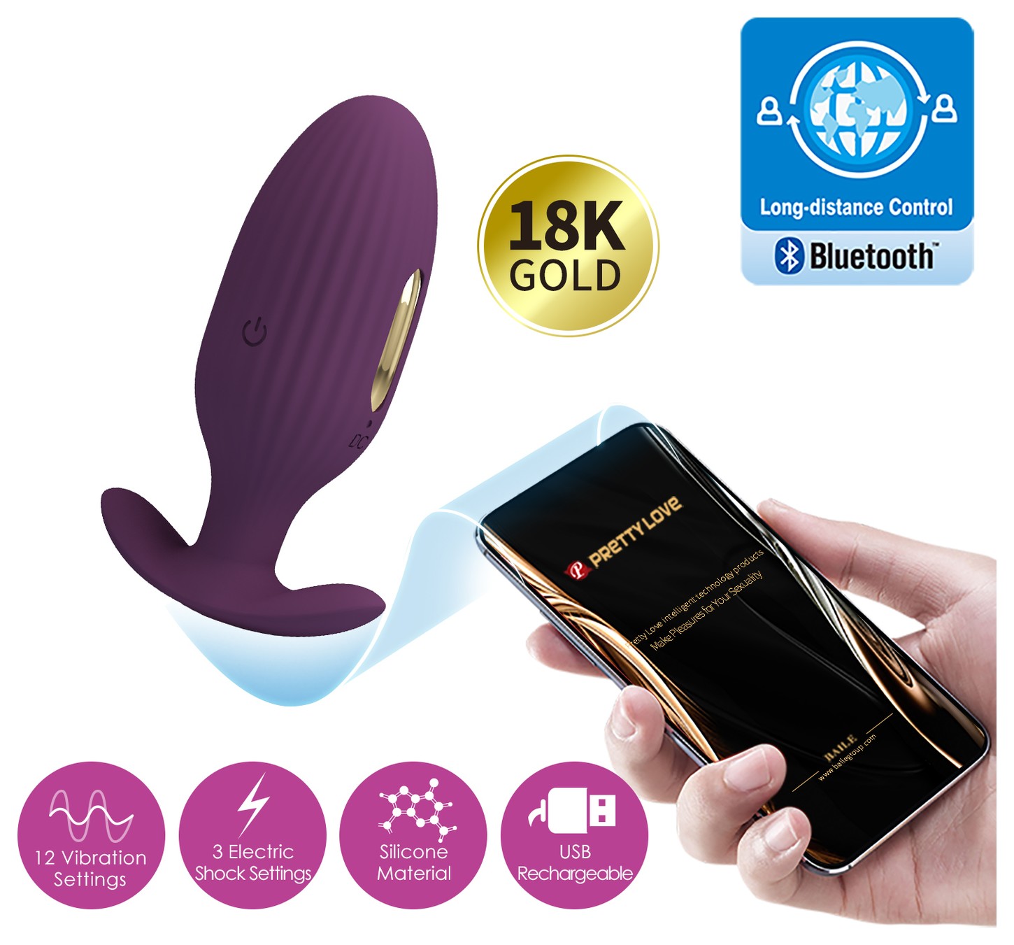 Фиолетовая анальная вибропробка с электростимуляцией Jefferson - 9,2 см