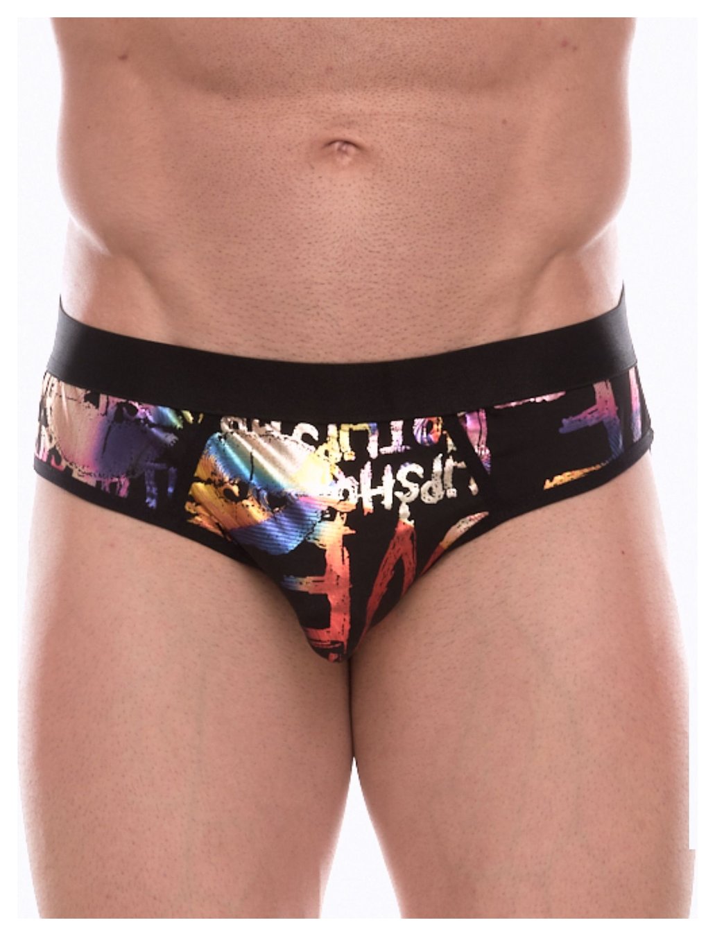 Черные трусы-джоки с разноцветным блестящим принтом