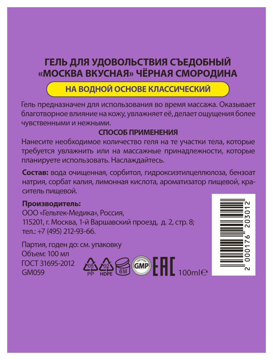 Универсальная смазка с ароматом смородины Москва Вкусная - 100 мл