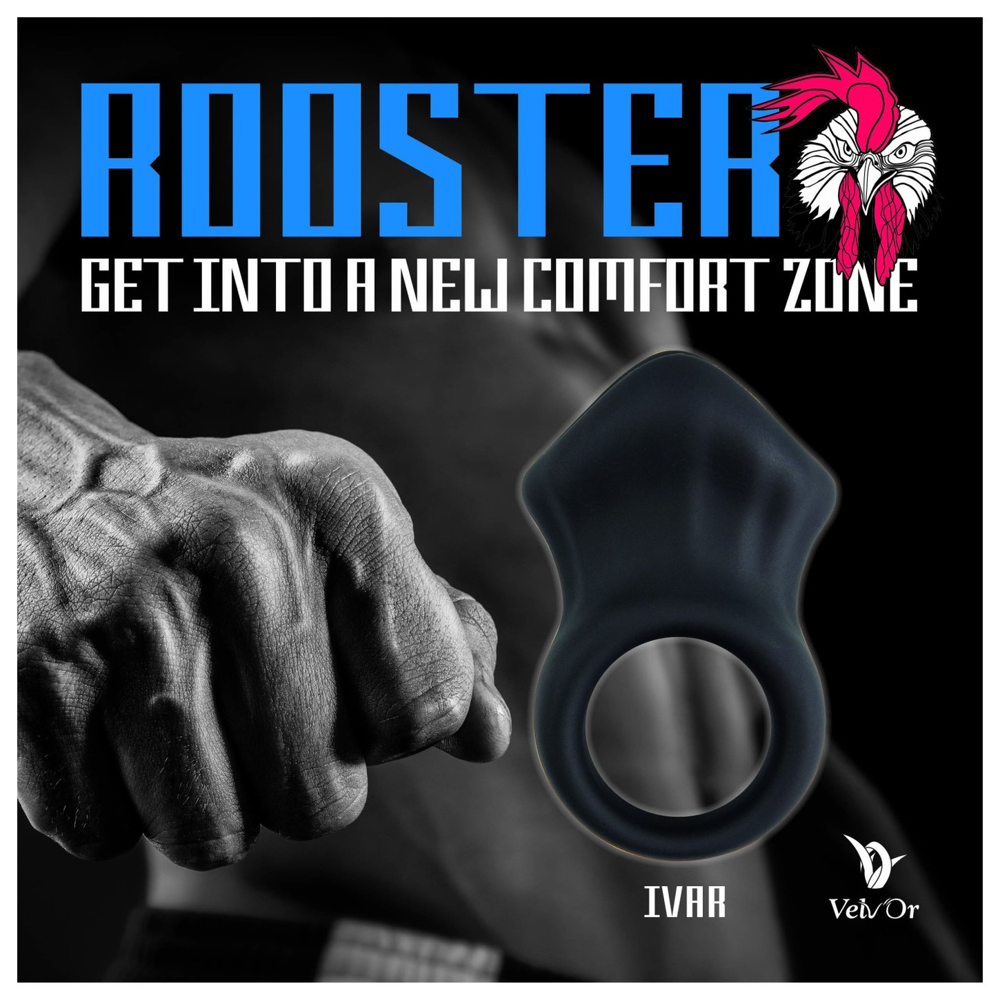 Черная эрекционная утяжка для пениса и мошонки Rooster Ivar