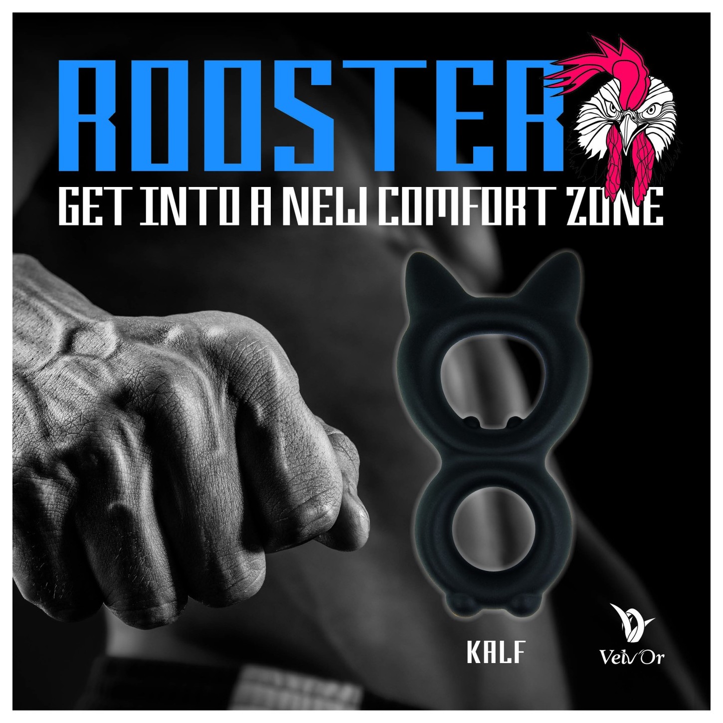 Черное двойное эрекционное кольцо Rooster Kalf