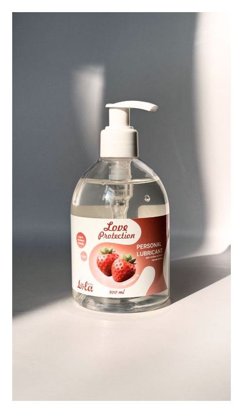 Лубрикант на водной снове Love Protection Strawberry с ароматом клубники - 300 мл