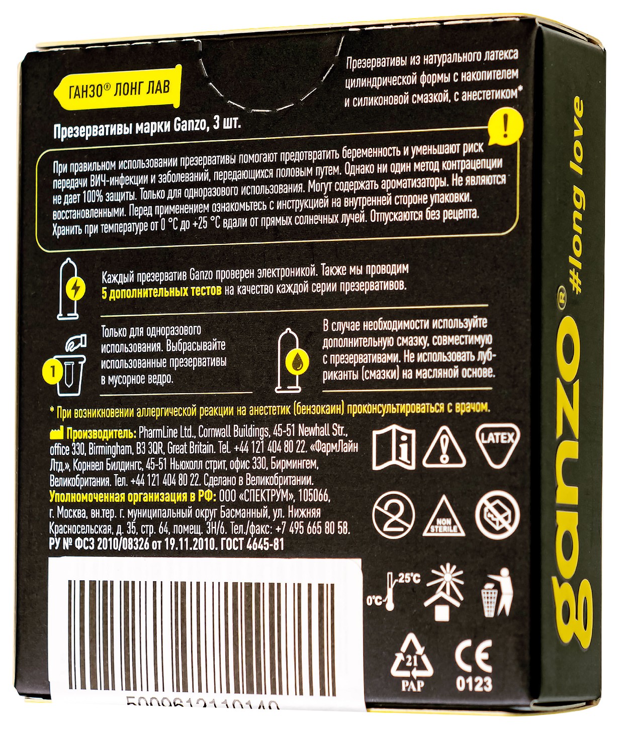 Презервативы с анестетиком для продления удовольствия Ganzo Long Love - 3 шт