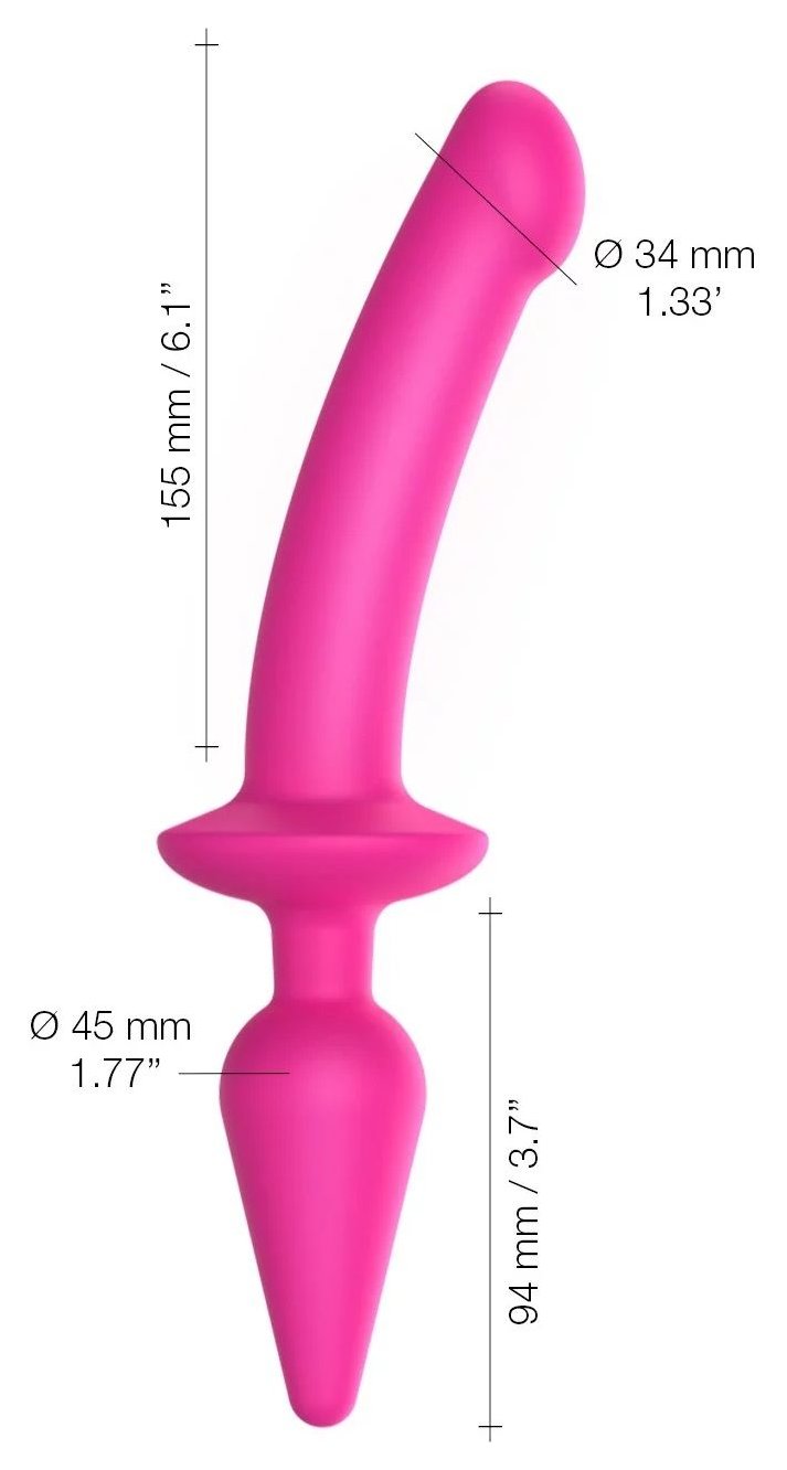 Ярко-розовый двусторонний фаллоимитатор Switch Plug-In Semi-Realistic Size L