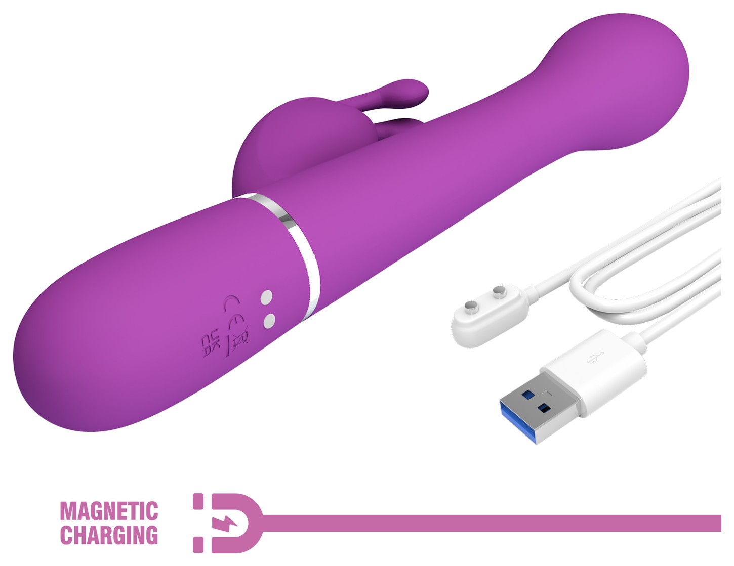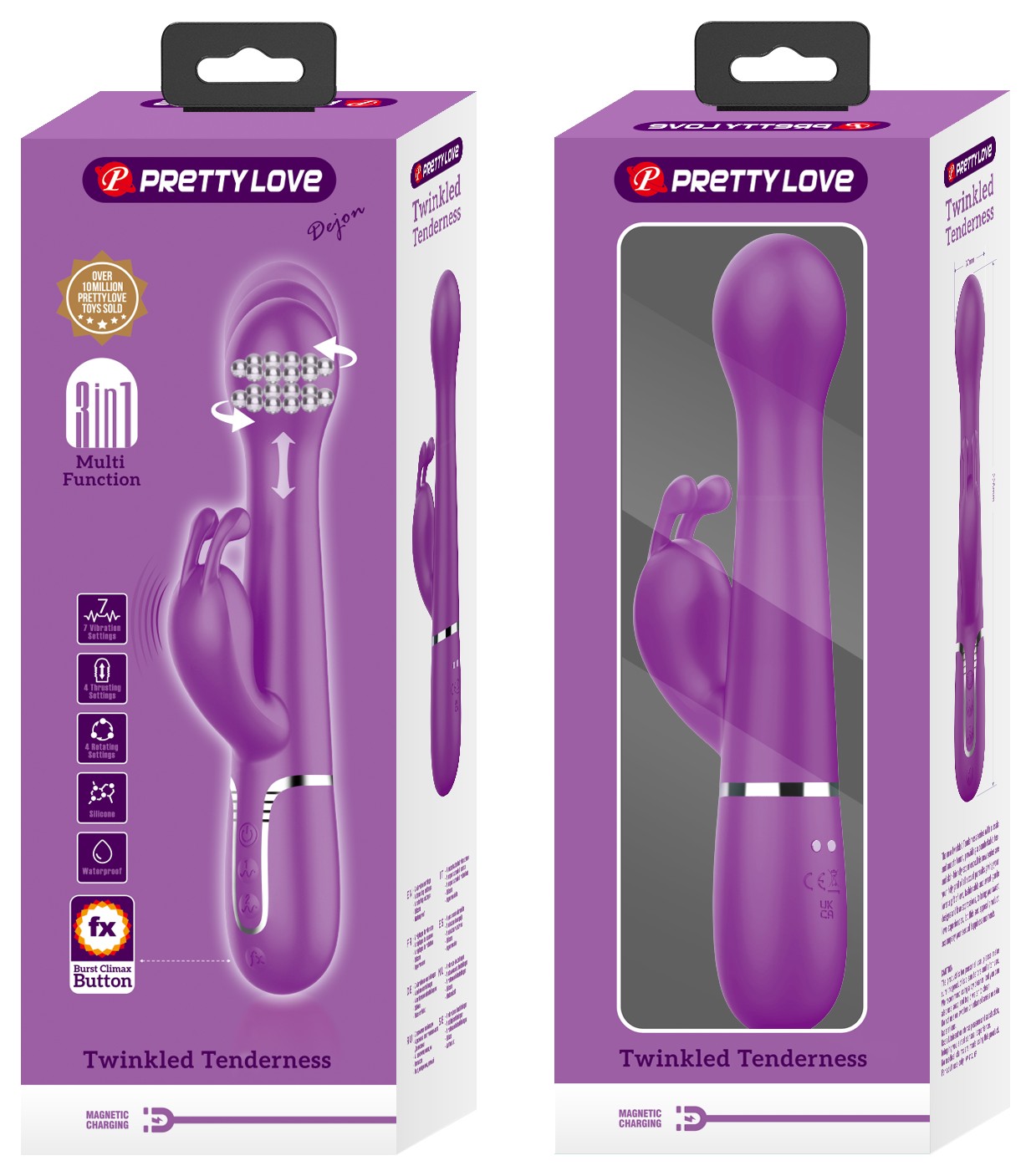 Dejon Pretty Love Модель формата кролик с комбинированной стимуляцией: внутренняя часть делает движения вперед-назад, а дополнительный модуль работает с внешней зоной. Внутри предусмотрены вращающиеся шарики, поэтому ощущения меняются не только за счет вибрации. Набор режимов помогает подобрать темп под настроение, а магнитная зарядка упрощает ежедневное использование. Форма рассчитана на уверенное удержание и точное управление.