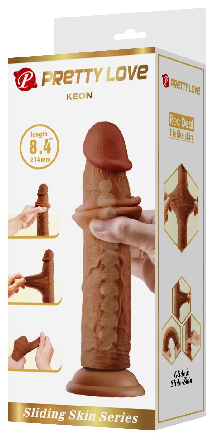 Коричневый фаллоимитатор с подвижной кожей Keon - 21,4 см