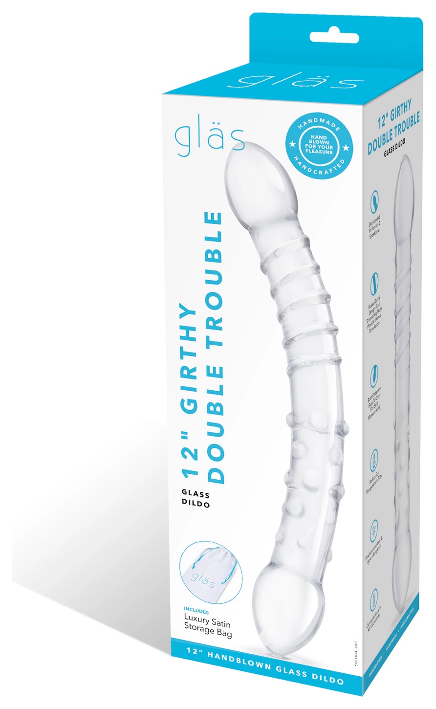 Двусторонний стеклянный фаллоимитатор Girthy Double Trouble
