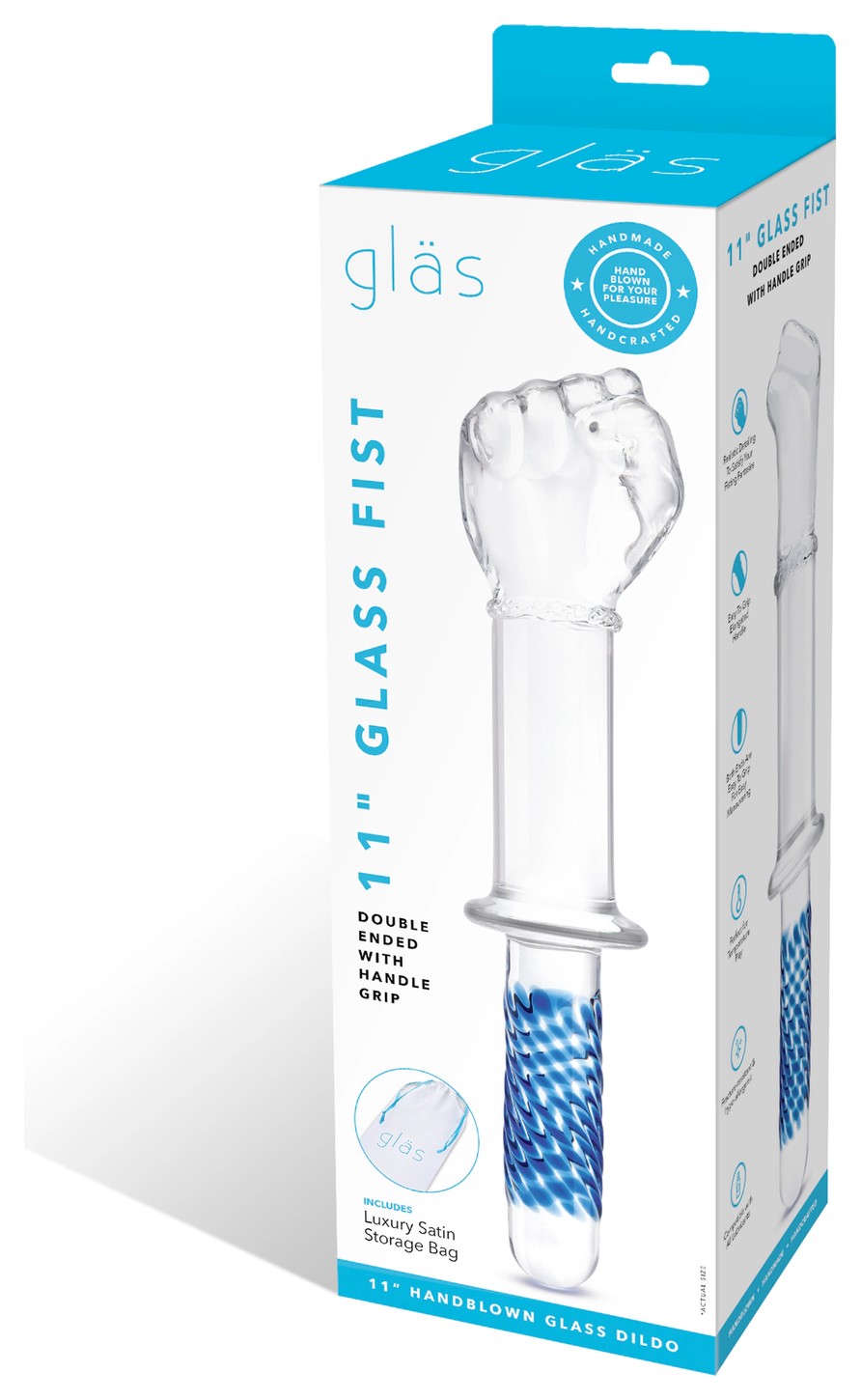 Стеклянный стимулятор в форме сжатой в кулак руки 11’’ Glass Fist Double Ended With Handle Grip - 28 см