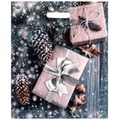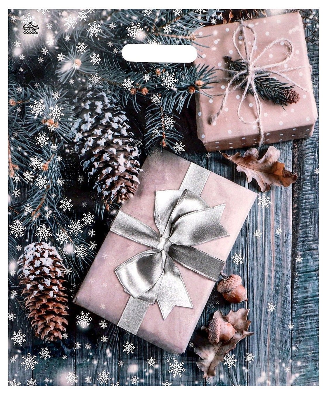 Новогодний пакет с принтом в виде подарков и вырубной ручкой (45х38 см)