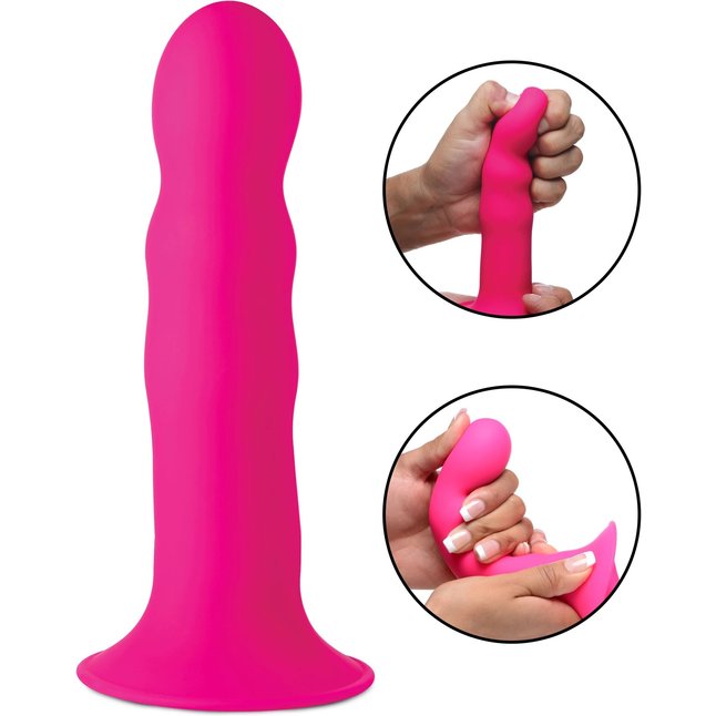 Розовый гибкий фаллоимитатор Squeeze-It Wavy Dildo - 18,3 см
