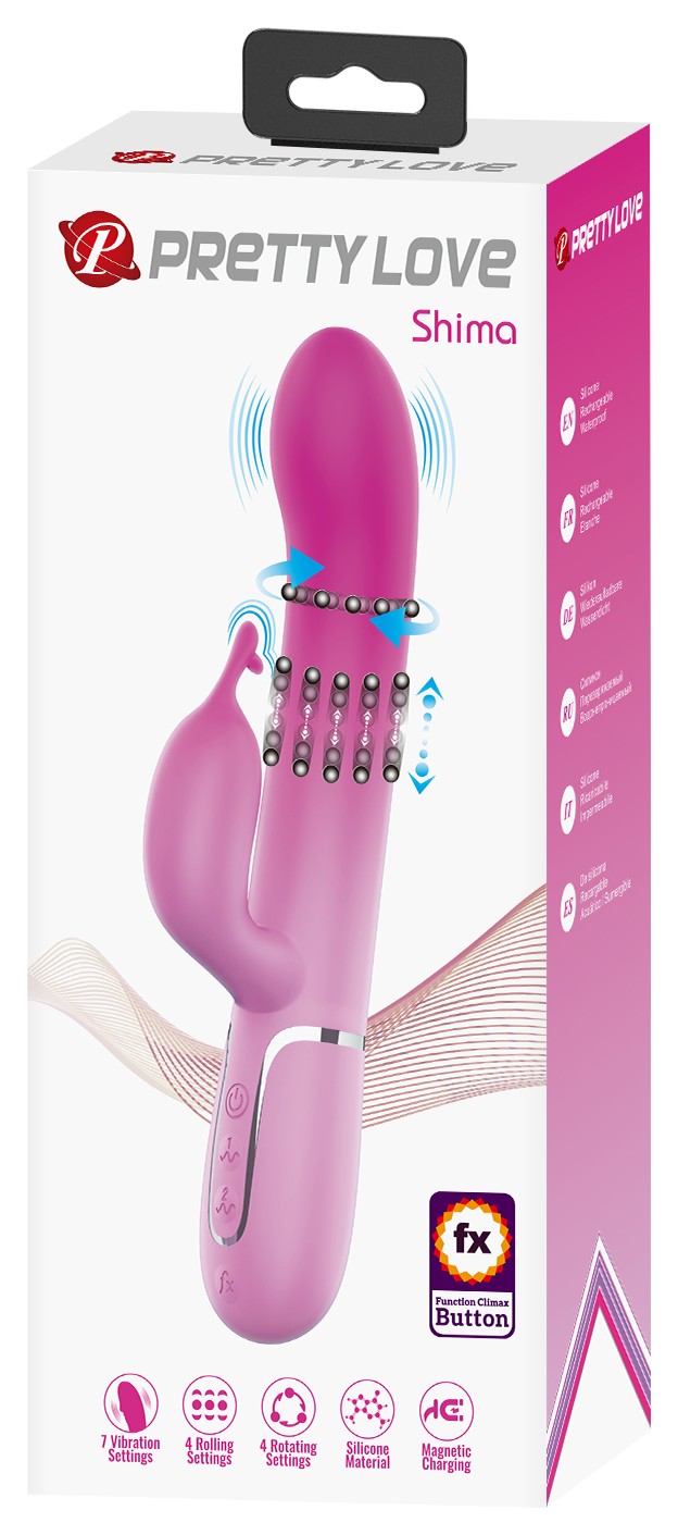 Розовый вибратор-кролик с вращающимися бусинами Shima - 22,6 см
